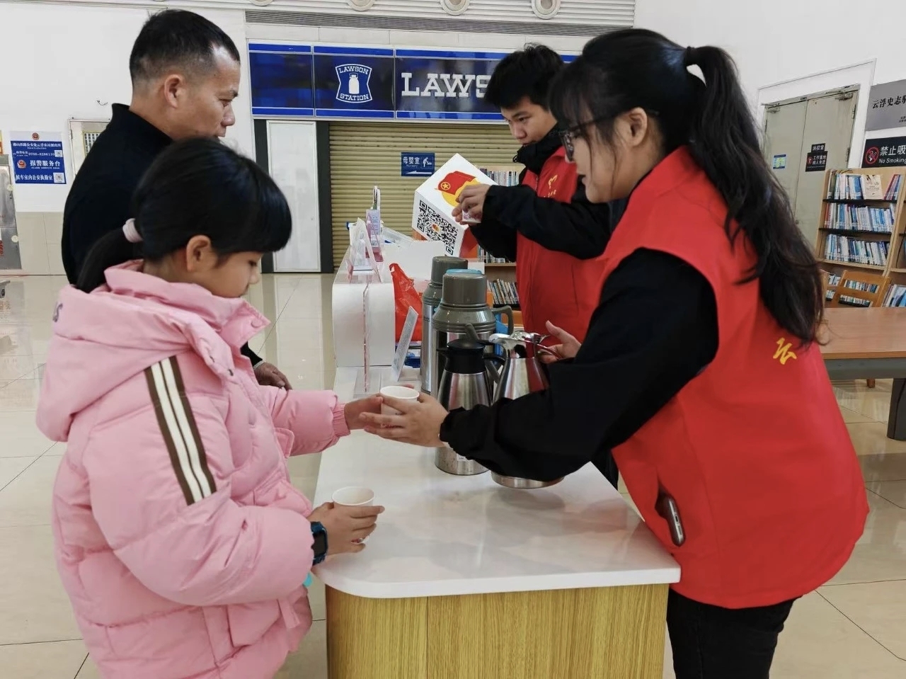 为切实保障人民群众平安、便捷、温馨出行,充分发挥返乡大学生与青年志愿者在春运服务保障中的积极作用,弘扬“奉献、友爱、互助、进步”的志愿精神,助力春运期间返乡人员及旅客实现有序、畅通、安全、暖心出行。自2月9日起,团云安区委联合云安区委社会工作部、云安交警、云浮农商银行团委、云安人保公司、石城镇团委、云安区志愿者协会在高铁云浮东站及国道G324茶洞中队门前路段设置“青春情暖驿站”。